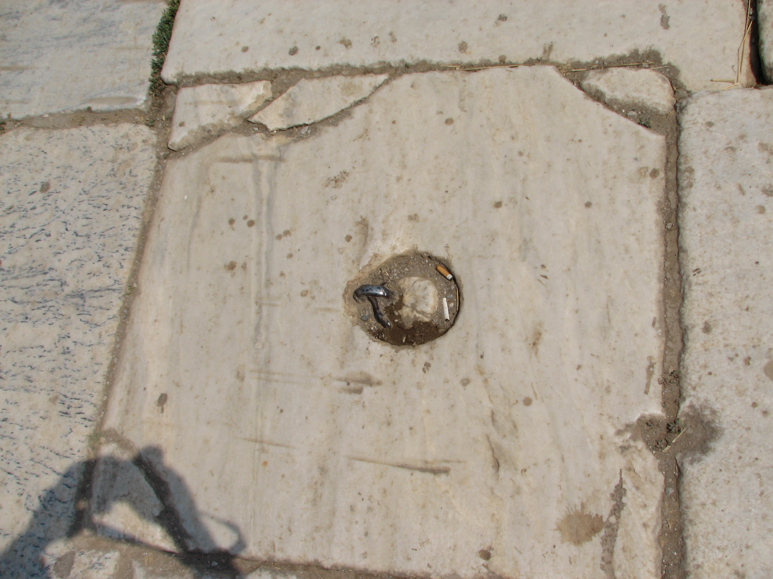 The first manhole. They would use the iron to pull up the block if they had to work on the pipes.
