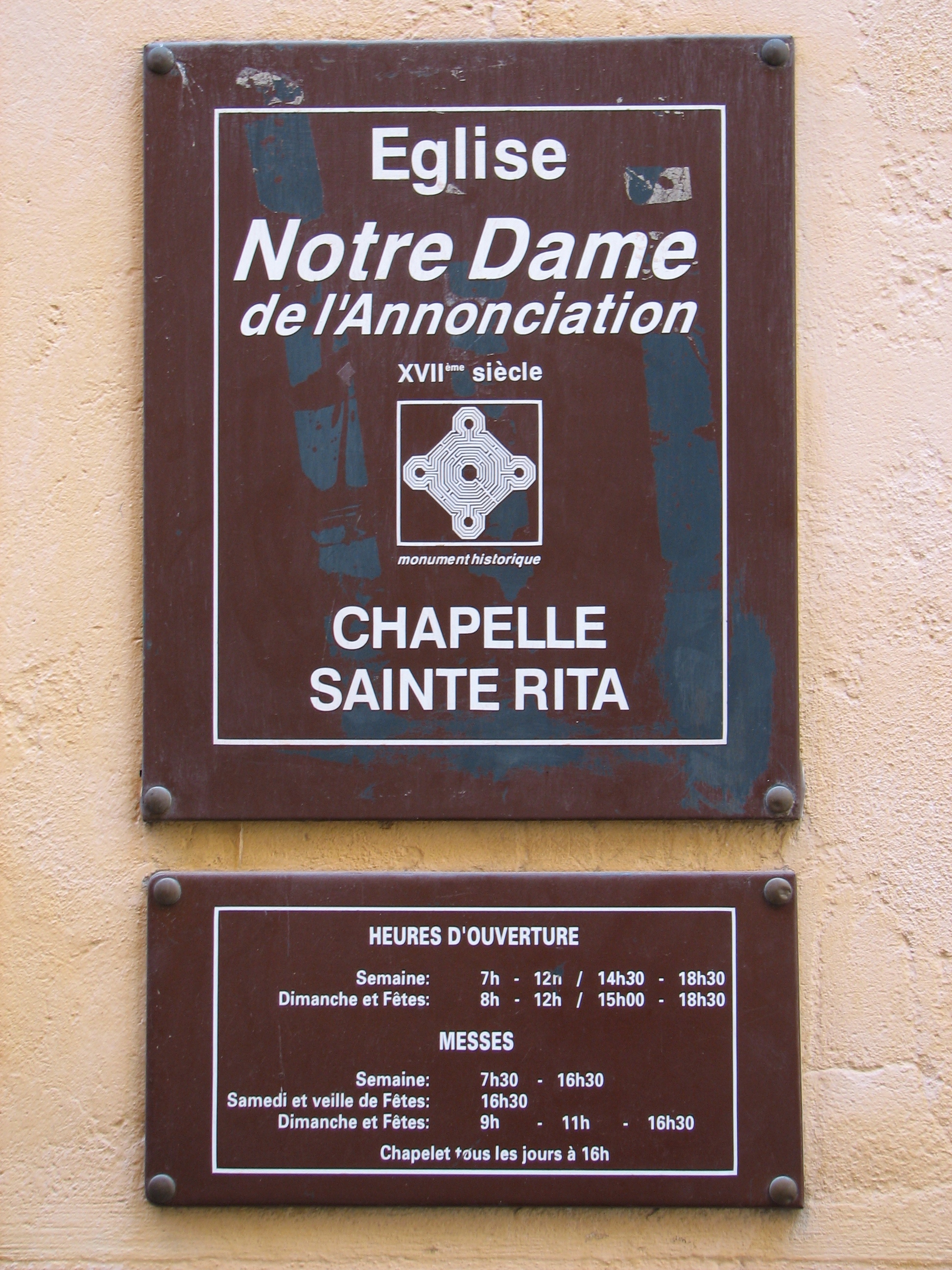 The sign outside the entrance to a beautiful chapel.